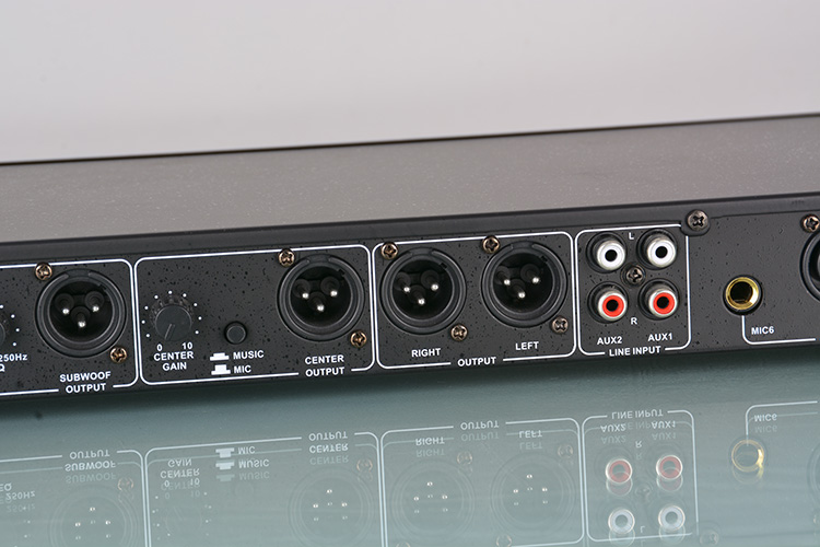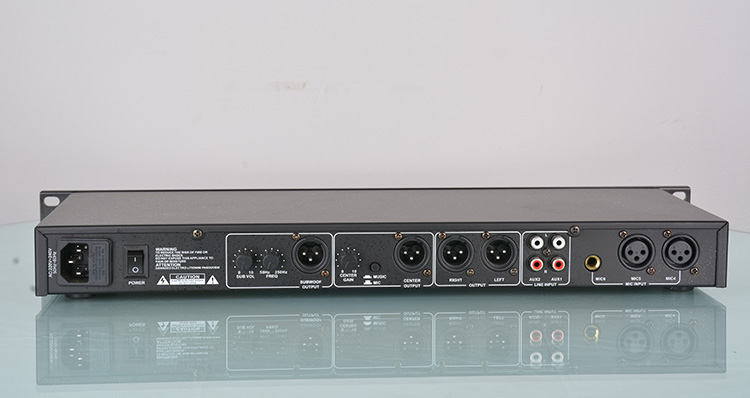 ■ 中置声道输出设计可选择音乐/混响比例或纯人声干音;并可单独控制音量及高中低频调节。