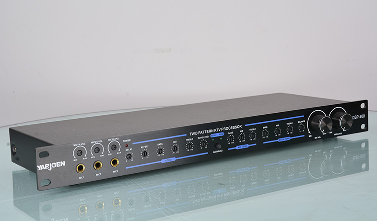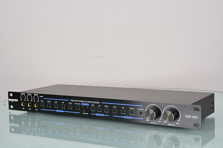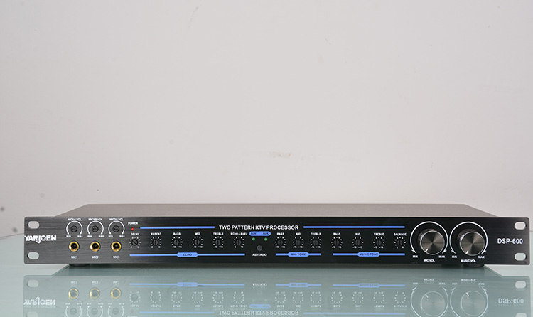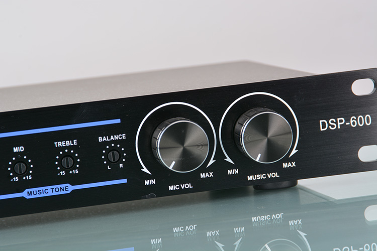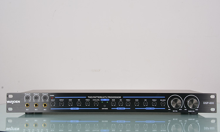DSP-600器采用了两片48BIT日本YAMAHA混响芯片,人声效果更加丰富、自然、通透。是一款高保真流畅自然甜美风格的立体声双混响和多用途卡拉OK效果器。